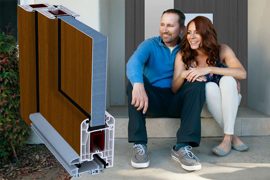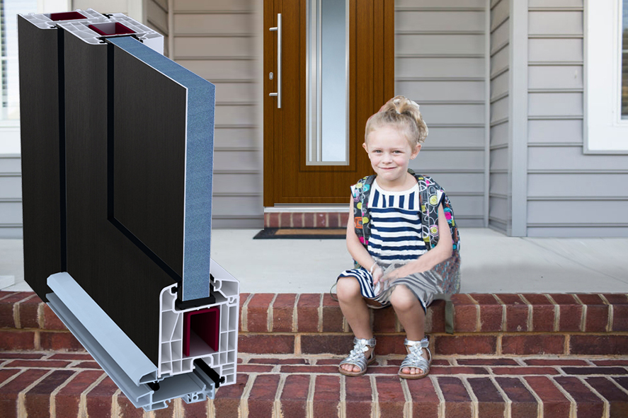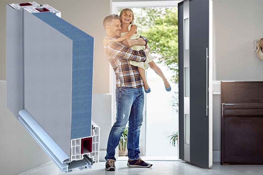 Die Premium-Serie wird mit ihrem hochverstärkten PVC-Material, Hochisolierte Füllung mit MDF Verstärkung und 3-fach Verglasung für Ihr Zuhause gut aussehen. Wärmegedämmte 5-Kammer-Konstruktion aus extrem schlagzähen PVC-Hart-Kunststoffprofilen mit einer Bautiefe von 71 mm.